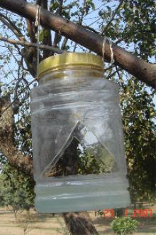 খ) ফেরোমন ফাঁদের ব্যবহারঃ মিথাইল ইউজেনল নামক সেক্স ফেরোমন ব্যবহার করে বিপুল সংখ্যক পুরুষ মাছি পোকা আকৃষ্ট করে বিএআরআই উদ্ভাবিত পানি ফাঁদে আটকিয়ে ফেলে এ পোকার বংশ বৃদ্ধি রোধ করার মাধ্যমে এ পোকার আক্রমণ কমানো সম্ভব। সেক্স ফেরোমন ফাঁদ ফল পাকার ৪-৫ সপ্তাহ পূর্বে ১২-১৫ মিটার দূরে দূরে স্থাপন করতে হবে।